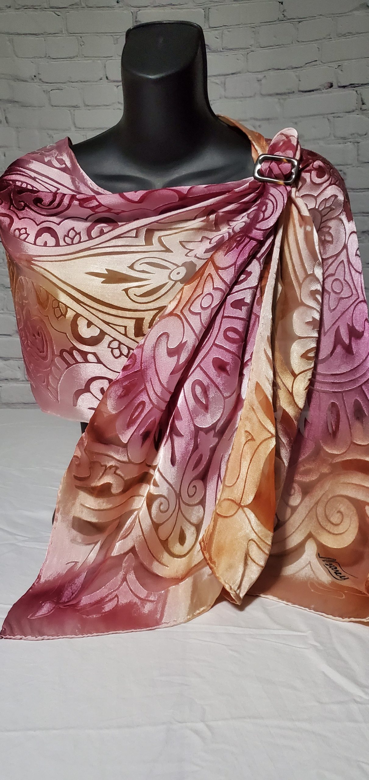 Hand Painted Devore Silk Scarf