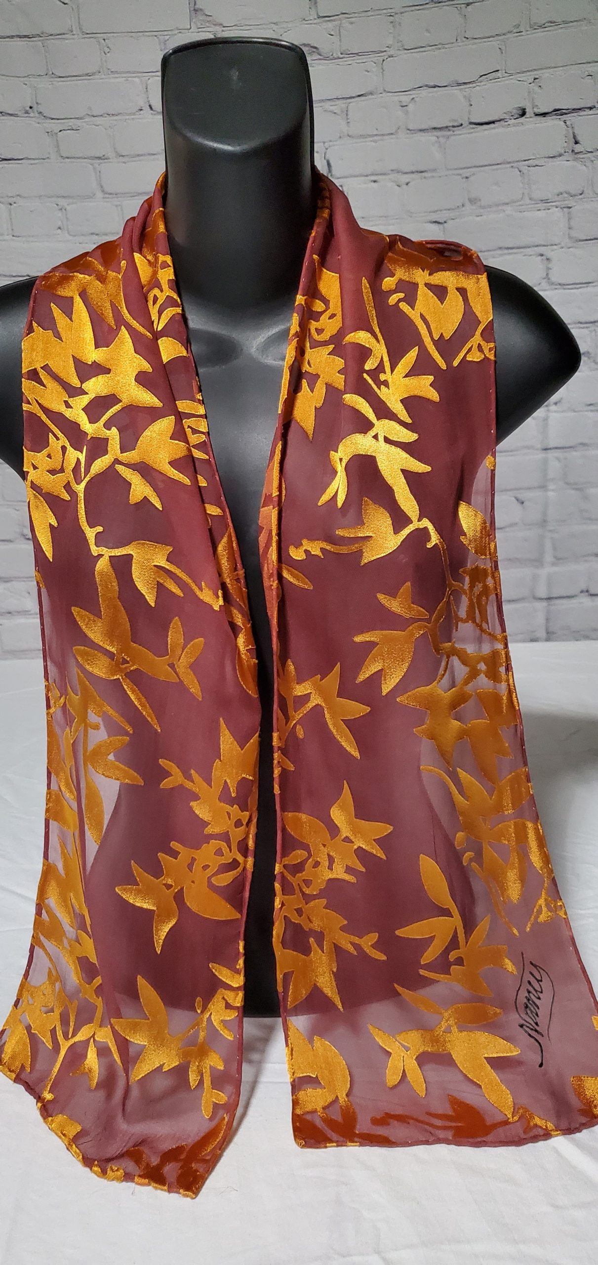 Textured Silk Scarves hand dyed in beautiful color combinations on Devore Silk