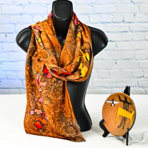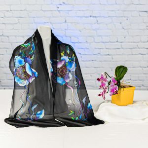 HAND PAINTED HABOTAI SILK SCARF PAINTED WITH FRENCH SILK DYES The yellow background gradually changes from yellow to green to blue while the green and blue leaves and vines travel along the length of the scarf. The soft nature-inspired colors seem to change with the light when you wear your scarf.
