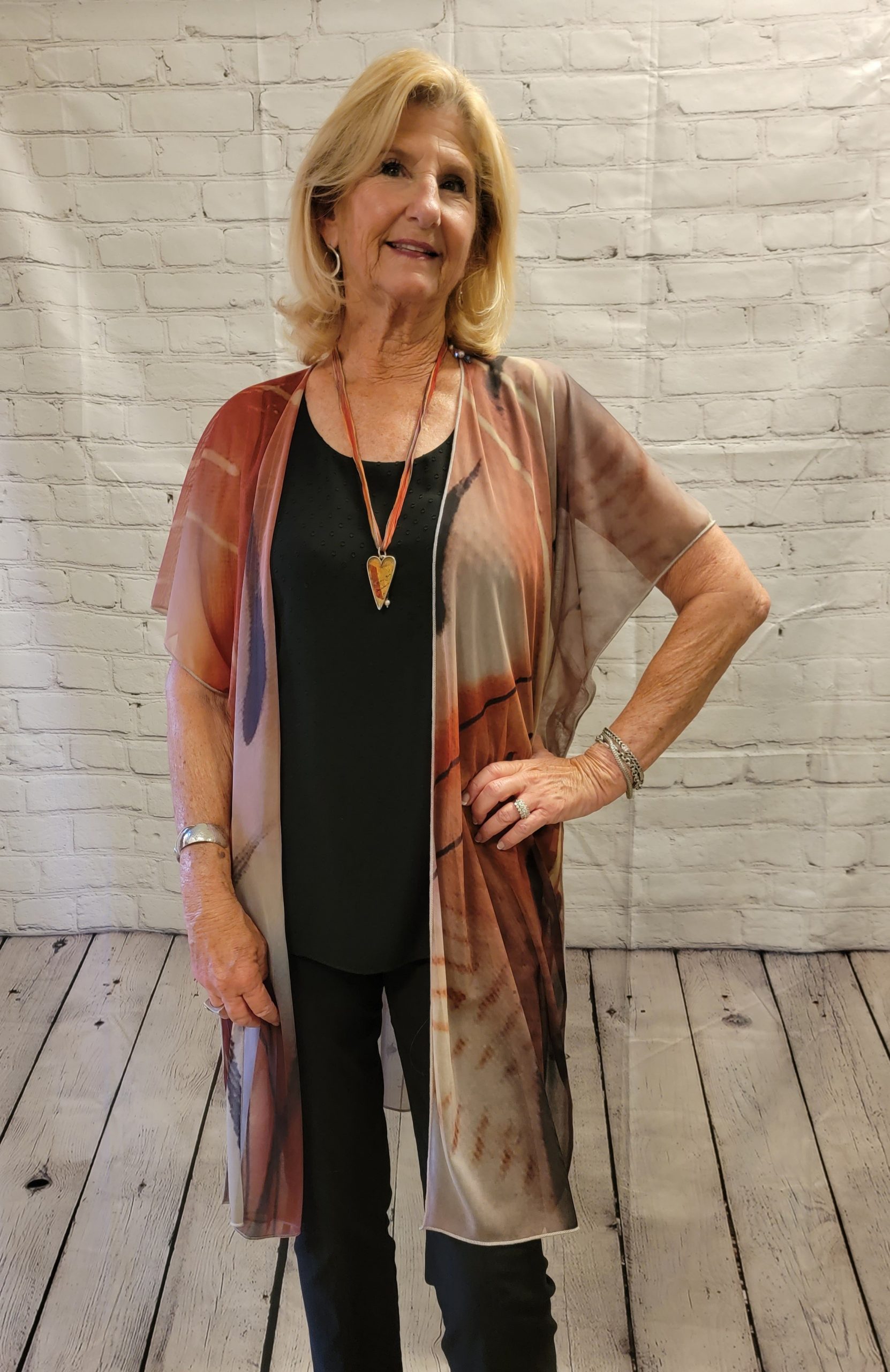 Original Hand Painted Design-Inspired Kimono Style Sheer Wrap