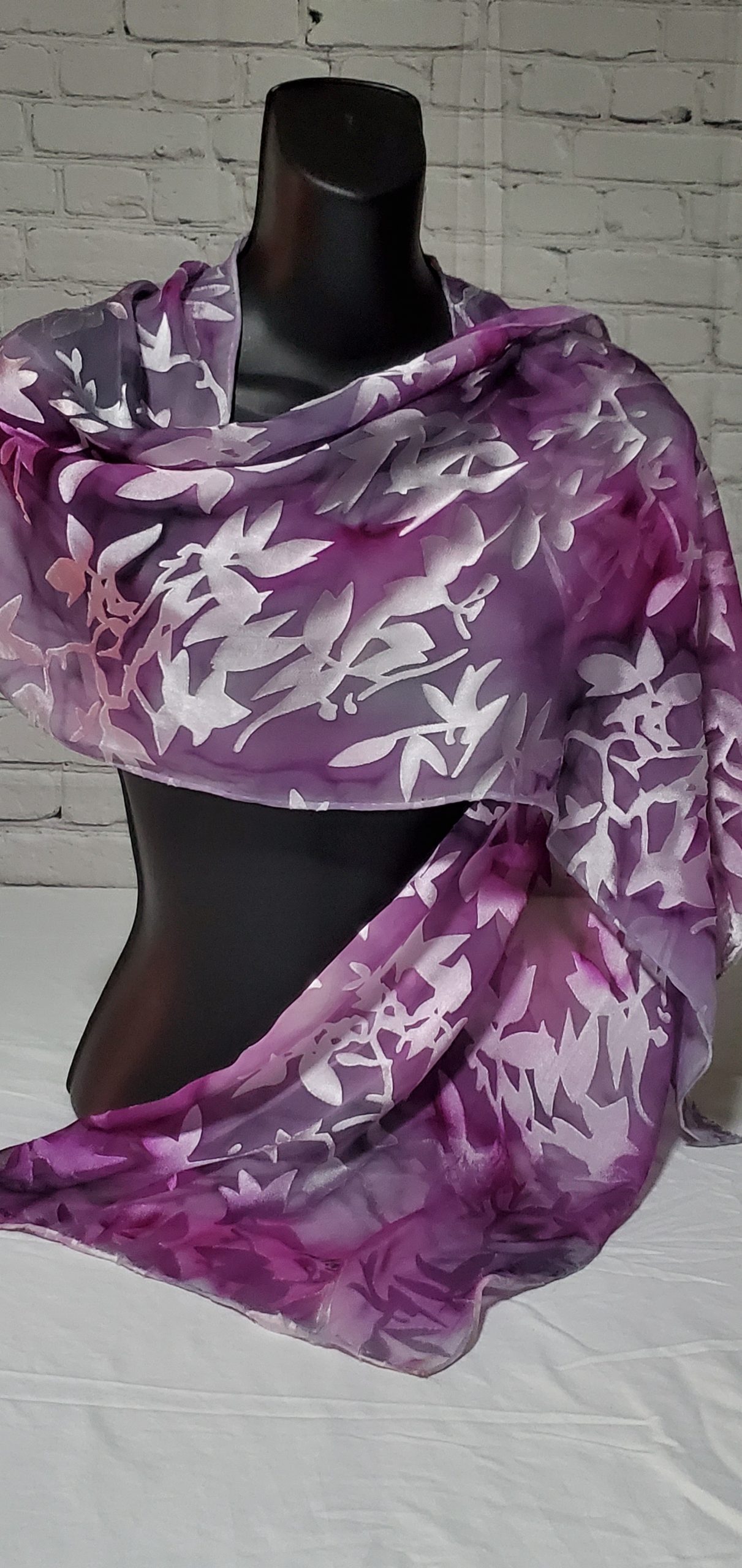 Textured Silk Scarf Beautifully Hand Painted with Colorful French Dyes on Devore Silk